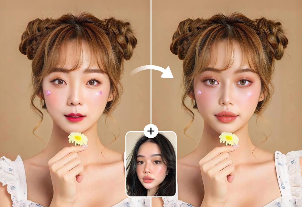 Với công cụ ghép mặt bằng AI miễn phí, bạn chỉ cần tải lên ảnh của mình và ảnh đích hoặc mẫu có sẵn. AI sẽ tự động ghép khuôn mặt một cách chính xác đến bất ngờ – không cần kỹ năng chỉnh sửa nào.